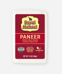 Mentioned as far back as 6000 BC, Paneer is a fresh cheese similar to queso blanco: moist, soft, and crumbly with a mild, milky flavor and subtle tang. Frequently used in South Asian cuisine, paneer is a versatile, non-melting cheese that is often used like tofu in many of the region’s dishes. Paneer is made without rennet, making it an ideal protein choice for vegetarians. Expertly handcrafted Royal Mahout Paneer is made with only the highest quality milk for an authentic, creamy taste and firm texture.